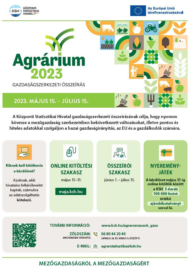 Kezdőlap Hírek Agrárium 2023 - Gazdaságszerkezeti összeírást tart a KSH Agrárium 2023 - Gazdaságszerkezeti összeírást tart a KSH 2023. május 11.