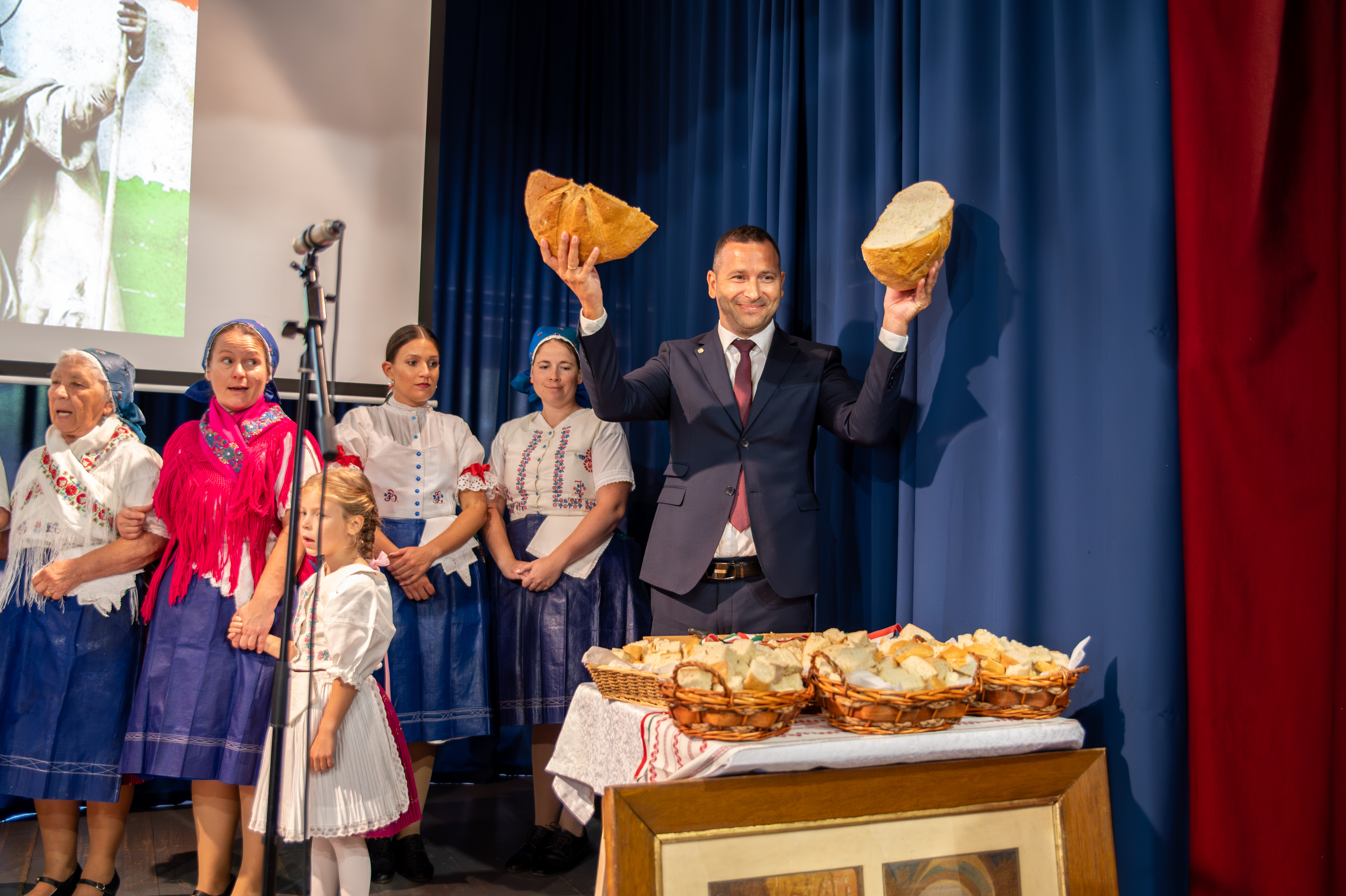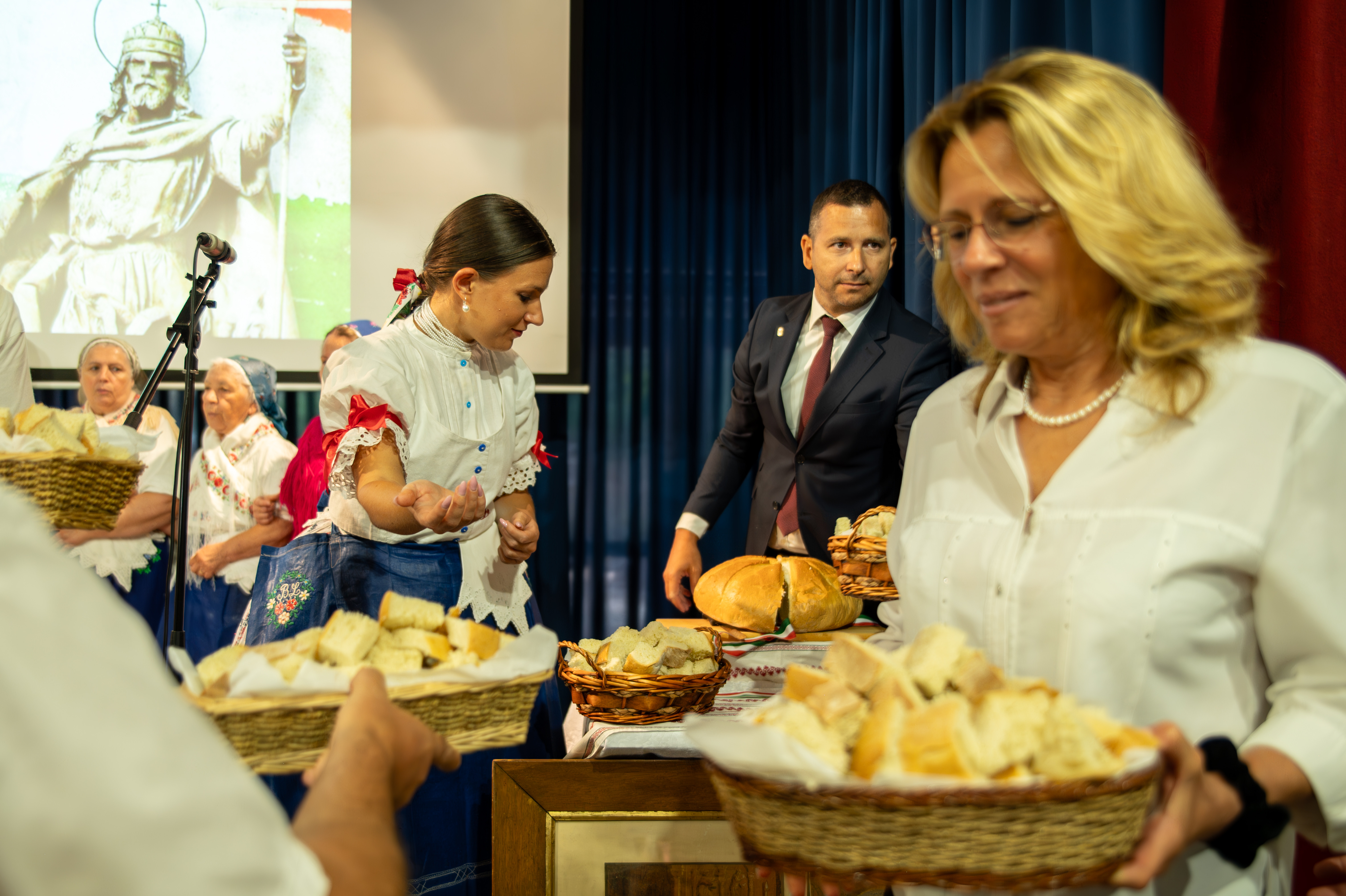 A hagyományok szerint Pintér Lajos megszegte a megszentelt kenyeret, amit a képviselő-testület, valamint a Szadai Czibere Táncegyüttes tagjaival közösen osztottak szét a nézők között. Az ünnepi műsor befejezéseként az idelátogatókat Szent István-napi terített asztalunk várta.
