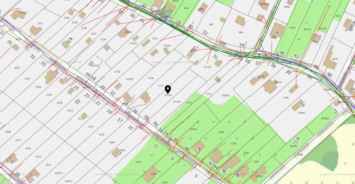 A HÉSZ szerint Lke-2 besorolású a telek, ami azt jelenti, hogy a területen oldalhatáron álló épületet lehet építeni, a legnagyobb beépítettség mértéke 30%.