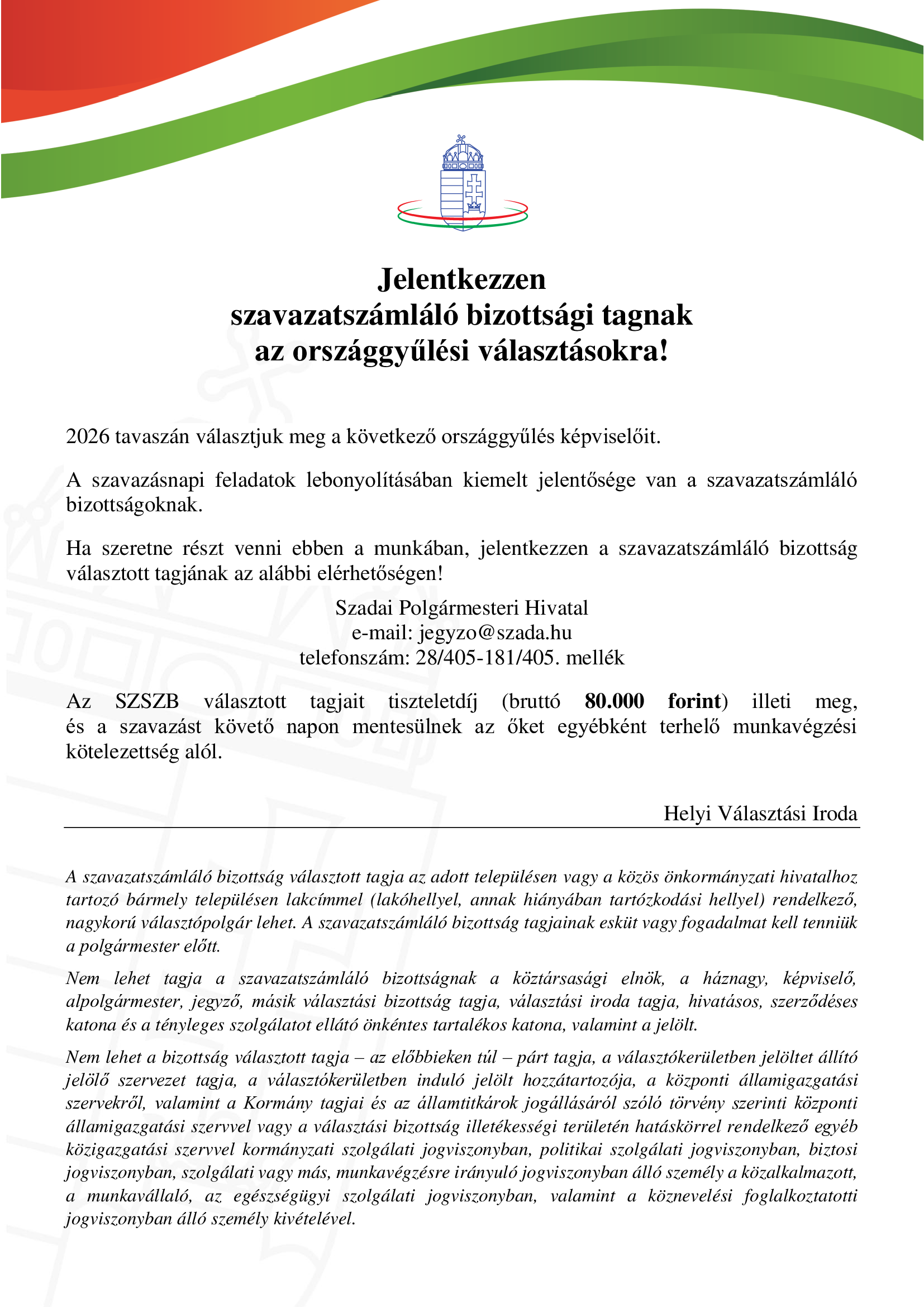 Várjuk szavazatszámláló bizottsági tagok jelentkezését!